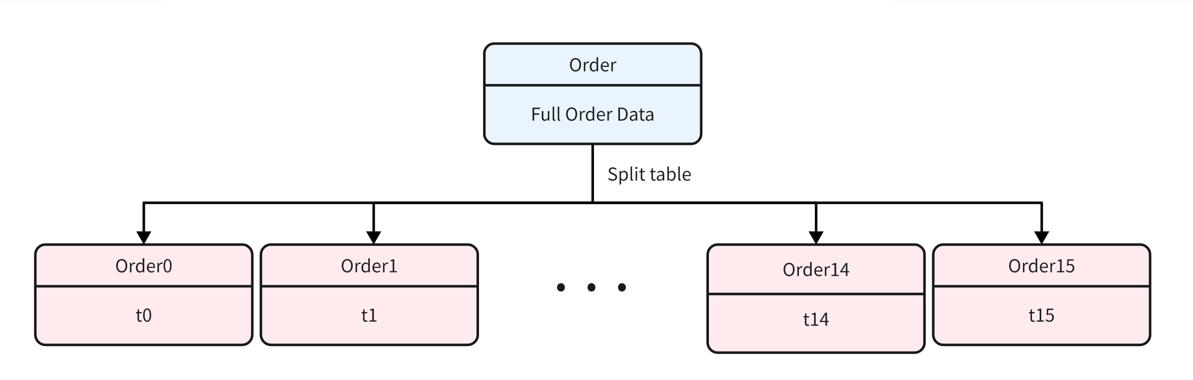 Suppose we now need to divide the order table into 16 tables ( t0,t1,…,t15 ) .